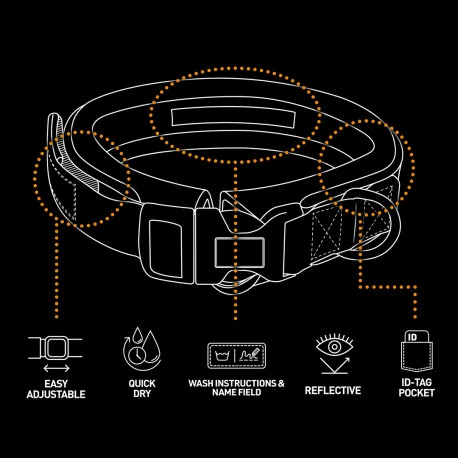 Sortez avec le collier confortable EXPLOR Ultimate Fit Comfy, un collier durable et confortable en néoprène doux. Il offre plus de contrôle en laisse et plus de confort pour le chien. Les matériaux ont été soigneusement choisis. Le collier sèche rapidement, résiste à l’usure et, en raison des bandes de couture réfléchissantes qui entourent le collier, est sûr dans la circulation. Ce collier EXPLOR Ultimate Fit Comfy est facile et rapide à ajuster, avec le velcro, et dispose d’un anneau en D robuste en acier inoxydable durable. À l’intérieur du collier, un numéro de téléphone peut être noté et vous trouverez des instructions de lavage claires pour une durée de vie optimale du collier. Sortez et EXPLOREZ !