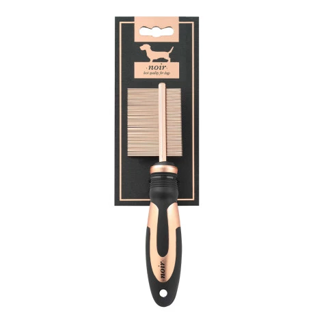 Cet élégant peigne en acier inoxydable galvanisé de Noir élimine les nœuds sans peine et nettoie le pelage. Ces dents arrondies traversent facilement le pelage ce qui réduit le risque d’irriter la peau. Sa poignée ergonomique est fabriquée en ABS résistant pour plus de confort pour le maître. La brosse convient pour toutes les races de chats et de chiens.